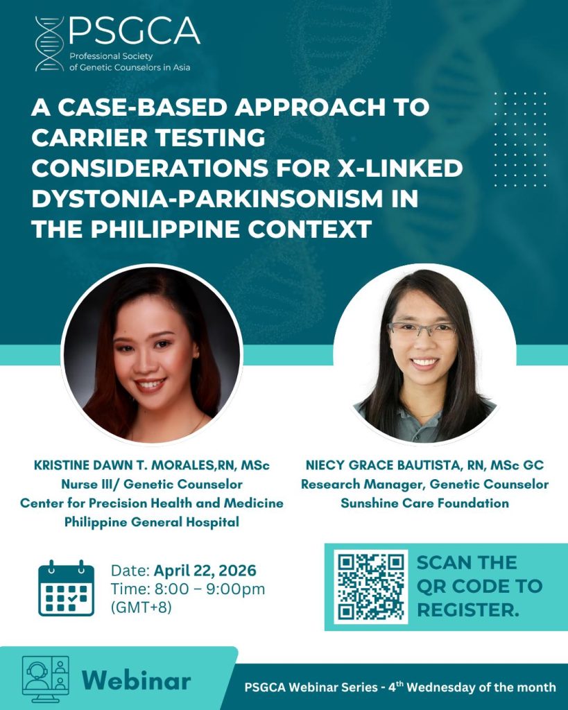 PSGCA in partnership with BGCI, GCSM, ISGC & PSGC would like to invite you to join us in our upcoming virtual forum entitled “Professional Development of Genetic Counselors in Asia” to be held on 4th Dec 13:00 SGT/PHT/MYT /HKT, 12:00 WIB, 10:30 IST. This 1-hour panel discussion will cover topics on the current status, professional issues, and career pathway of genetic counselors in our region.